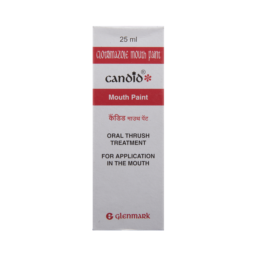 Candid Mouth Paint is an antifungal medication. It treats fungal infections of the mouth. It kills fungi by destroying the fungal cell membrane. Candid Mouth Paint should be applied on the site of lesion inside the mouth. Follow the doctor’s instruction or use it in the dose and duration suggested by the doctor. Do not stop using it until you have finished the complete course, even when you feel better. You must have to avoid eating, drinking, or smoking for at least 30 minutes after using it.It is a safe medicine with few side effects, but you may get allergic reactions like swelling of the lips, throat or face, and trouble breathing. Inform your doctor if bothers you or does not go away.It is not likely that other medicines you take by mouth or injection will affect the way it works but talk to your doctor before using it if you have used a similar medicine before and had an allergic reaction. This medicine should only be used if it is clearly needed during pregnancy.