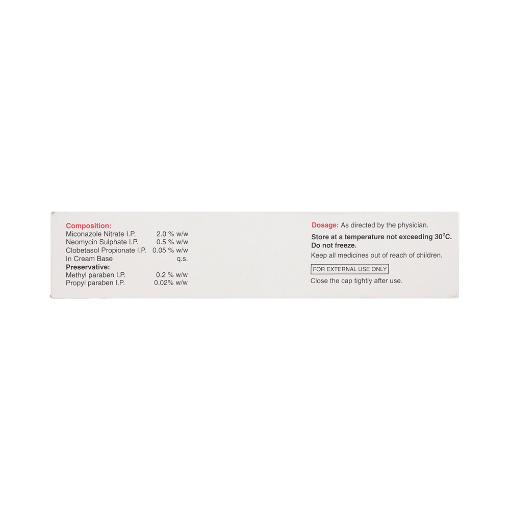 Salt Composition: Clobetasol (0.05% w/w) + Miconazole (2% w/w) + Neomycin (0.5% w/w)