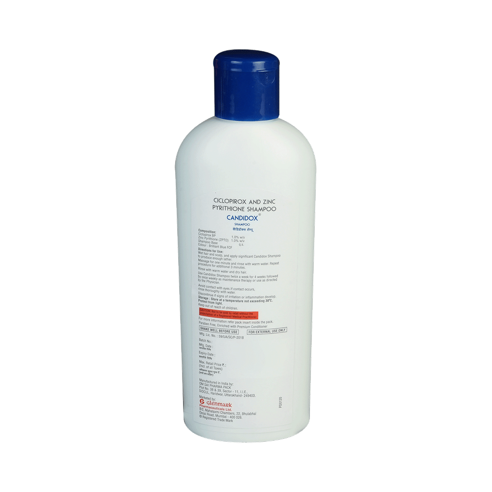 Candidox Shampoo is an anti-dandruff medicine that is used to treat dandruff. It fights against dandruff-causing microorganisms to stop their spread and growth. It rejuvenates the skin cells and helps in getting dandruff-free hair. Candidox Shampoo is only meant for external use and should be used as advised by your doctor. Before using it you must read the label for a proper application that will ensure a better efficacy of the medicine. If it gets into your eyes, nose, mouth, or vagina rinse it with water. Candidox Shampoo may take several days to weeks for your symptoms to improve, but you should keep using it regularly. The course of the treatment should be completed to ensure better efficacy of the medicine. If your condition does not improve or gets worse, you should talk to your doctor.The most common side effect of this medicine includes itching, dryness, redness, and a burning sensation at the application site. These are usually self-limiting. Serious side effects are rare. You must consult the doctor if you experience any allergic reaction (rashes, itching, swelling, shortness of breath, etc.).Before using Candidox Shampoo, it is important to tell your doctor if you are taking or have recently taken any other medicines for the same disease or other diseases. Pregnant and breastfeeding women should take this medicine with proper consultation and caution.