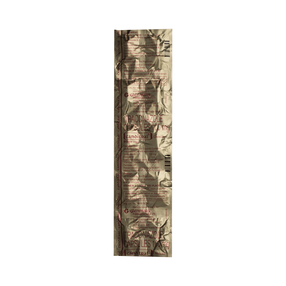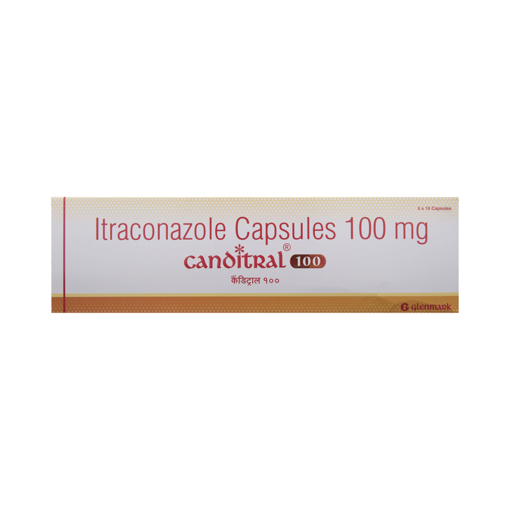 In Treatment of Fungal infectionsCanditral 100 Capsule is an antifungal medicine. It is used to treat infections in different parts of the body caused by fungi. It works by killing and stopping the growth of fungi. This provides relief from various symptoms caused by the infection and speeds up the healing process. You should keep taking the medicine until you complete the dose even if you get better. This will prevent the infection from returning.