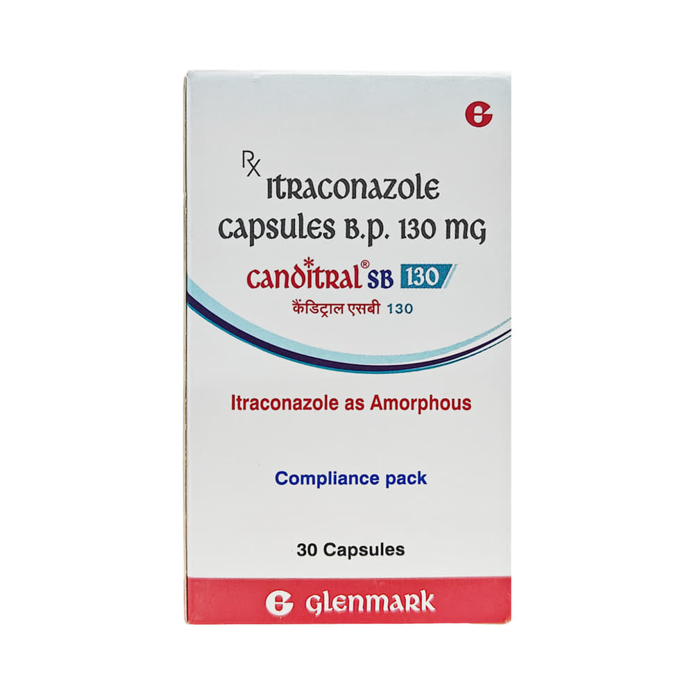 In Treatment of Fungal infectionsCanditral SB 130 Capsule is an antifungal medicine. It is used to treat infections in different parts of the body caused by fungi. It works by killing and stopping the growth of fungi. This provides relief from various symptoms caused by the infection and speeds up the healing process. You should keep taking the medicine until you complete the dose even if you get better. This will prevent the infection from returning.