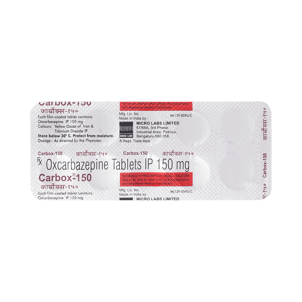 Carbox 150 Tablet is used to treat and prevent epilepsy (seizures). However, it cannot cure epilepsy and will only work to prevent seizures for as long as you continue to take the medicine. Carbox 150 Tablet may be used alone or in combination with other medicines. The dose and how often you need to take it will be decided by your doctor so that you get the right amount to control your symptoms. It may be increased gradually. You can take this medicine with or without food but take it at the same time each day to get the most benefit. It usually takes a couple of weeks to work. It is important to take this medicine regularly and for as long as you are advised, even if you feel well. Missing doses may trigger seizures and, if you stop, your condition may get worse. It should never be stopped suddenly.The most common side effects of this medicine include nausea, vomiting, feeling dizzy, tired or drowsy, unsteadiness, and low sodium levels in blood. Most of these are not serious. Keep taking the medicine but talk to your doctor if these side effects bother you or do not go away. However, if you notice a skin rash or redness, tell your doctor straight away. It could develop into a life-threatening skin condition called Stevens-Johnson syndrome. Long-term treatment with this medicine can cause osteoporosis (reduced bone mass) and increase your risk of breaking a bone. Anticonvulsants like this medicine may cause suicidal thoughts and behaviors. If your mood becomes depressed, tell your doctor.This medicine may not be suitable for everybody. Before using it, tell your doctor if you have ever had heart problems, kidney or liver disease, difficulty urinating, depression, or suicidal thoughts. Many other medicines can interfere with it and some should not be taken together so tell your doctor all the medicines you are taking to make sure it is safe. If you are pregnant, do not start or stop taking this medicine without asking your doctor. Drinking alcohol should be avoided as it can increase some of the side effects and can also increase your risk of seizures. You may need frequent blood tests to help your doctor make sure you are taking the right dose both before you start and while you are using it.