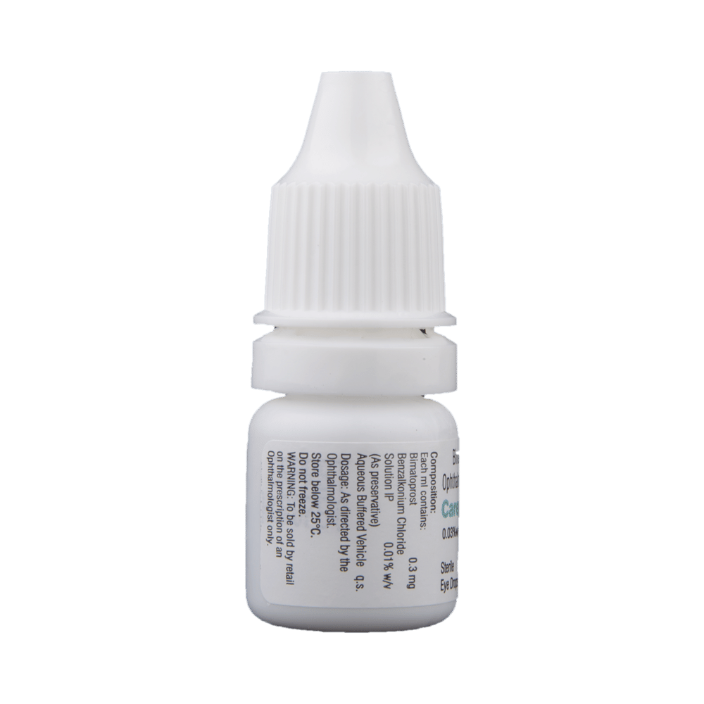 Careprost Eye Drop is a medicine used to reduce pressure in the eyes in adults with glaucoma and high pressure in the eye. If the pressure in your eye is too high it can damage your sight, potentially leading to blindness. It works by helping fluid flow from inside the eye into the blood. Careprost Eye Drop is suitable for adults and children and can be used by itself or in combination with other eye medicines to reduce pressure. Follow the instructions given by your doctor and use this medicine regularly to get the most benefit. If you stop using it, pressure in the eye could increase and damage your sight. Never use a bottle if the seal is broken before you use it for the first time. Make sure you remove contact lenses if you wear them and wait for at least 15 minutes before putting them back.The most common side effects of this medicine include conjunctival hyperemia and eye itching. If you get any side effects, talk to your doctor. They may be able to tell you ways of reducing or preventing some side effects or suggest another treatment. If your vision is blurred or you have other changes in sight for a time, do not drive until your vision is clear. This is usually a short term side effect.