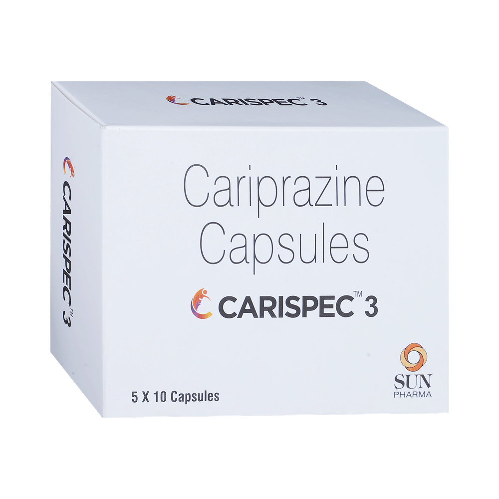 Carispec 3 Capsule is a medication that works to treat bipolar disorder and schizophrenia. It rebalances chemicals such as dopamine and serotonin in the brain to improve mood, thinking, and behavior.