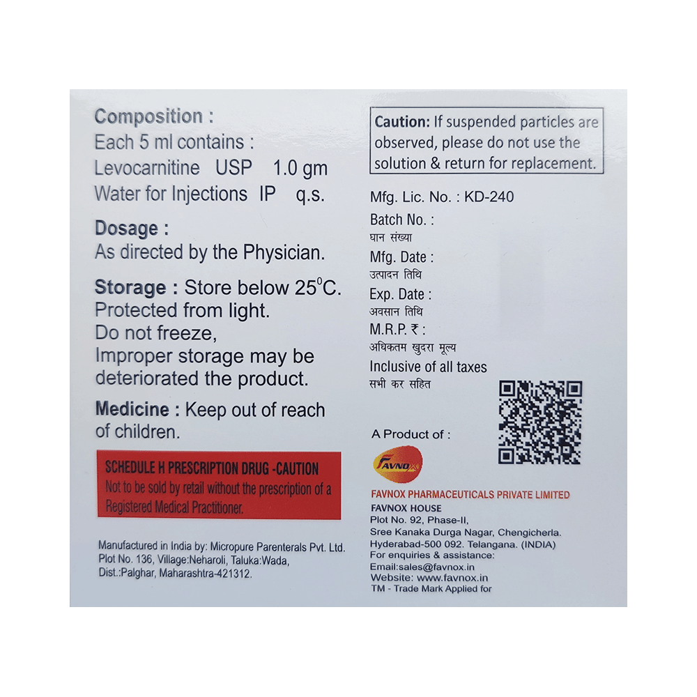 Salt Composition: Levo-carnitine (1gm/5ml)