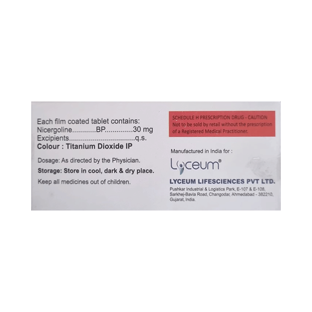 Salt Composition: Nicergoline (30mg)