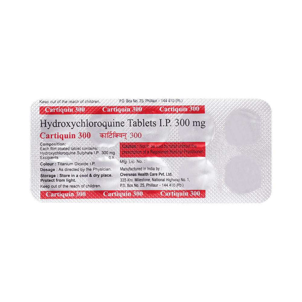 Cartiquin 300 Tablet is a Disease Modifying Anti-Rheumatoid Drug (DMARD). It works by suppressing the overactivity of the immune system that causes inflammation (swelling) and pain in the joints. This slows the progression of the underlying disease. It has also been suggested that hydroxychloroquine may increase insulin sensitivity and improve beta-cell function, thereby improving glycemic control in patients with type 2 diabetes mellitus.