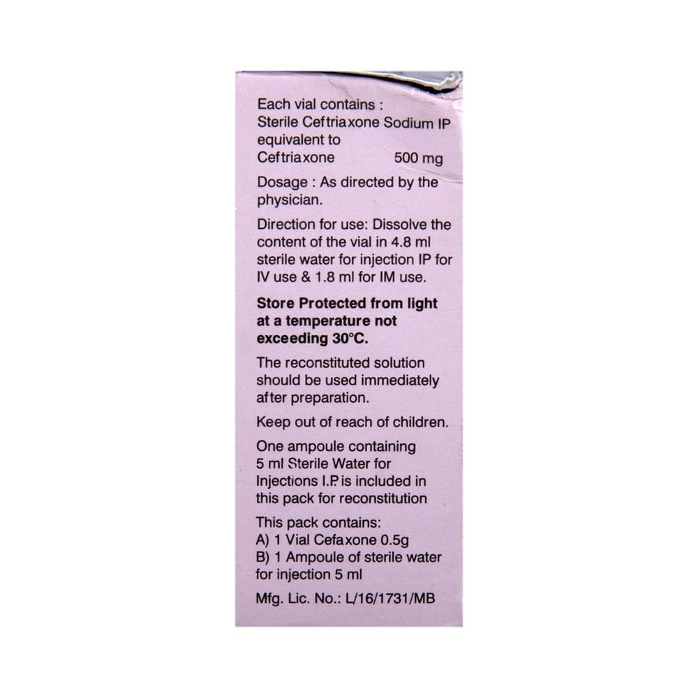 Salt Composition: Ceftriaxone (500mg)
