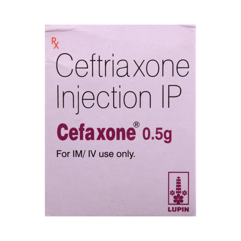 Cefaxone 0.5gm Injection is a medicine used to treat bacterial infections in your body. It is effective in infections of the brain (e.g., meningitis), lungs (e.g., pneumonia), ear, urinary tract, skin and soft tissues, bones and joints, blood, and heart. Cefaxone 0.5gm Injection may also be used to prevent infections during surgery. It is given as a drip (intravenous infusion) or as an injection directly into a vein or a muscle under the supervision of a doctor. Your doctor will decide the correct dose for you. This medicine will be given to you regularly at evenly spaced intervals as per the schedule prescribed by your doctor. Do not skip any doses and finish the full course of treatment even if you feel better. Stopping the medicine too early may lead to the return or worsening of the infection.The most common side effects of Cefaxone 0.5gm Injection include diarrhea, rash, changes in liver function tests, and blood cell counts (such as high eosinophil count, decreased white blood cells, and low blood platelets). Some people may develop temporary redness or pain at the site of injection. These side effects are usually mild, but let your doctor know if they bother you or do not go away.Before taking Cefaxone 0.5gm Injection, you should let your doctor know if you are allergic to any antibiotics or have any kidney or liver problems. You should also let your doctor know about all other medicines you are taking, as they may affect, or be affected by, this medicine.