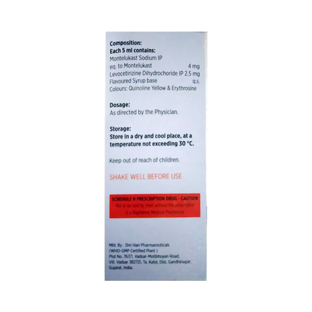 Salt Composition: Levocetirizine (2.5mg/5ml) + Montelukast (4mg/5ml)