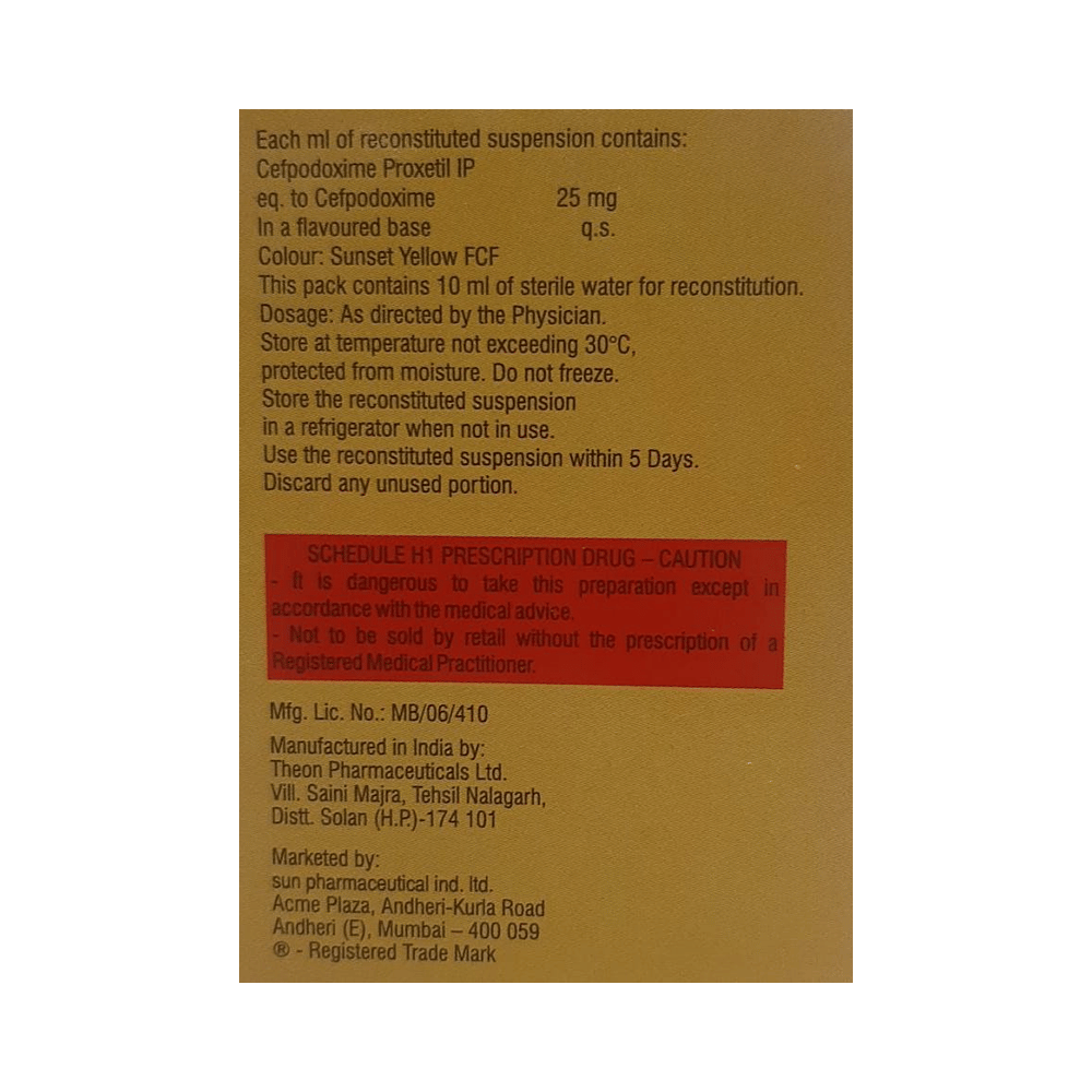 Salt Composition: Cefpodoxime Proxetil (25mg)
