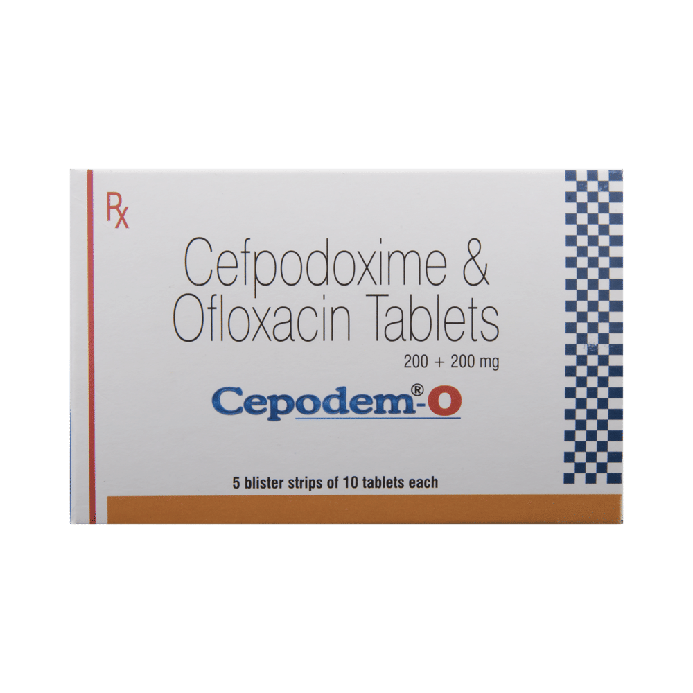 Cepodem-O Tablet is a combination medicine that is used to treat various types of bacterial infections. It fights against the microorganisms to prevent their growth and further spread of the infection. Cepodem-O Tablet is a prescription medicine. It is advised to take it as per the prescription. It can be taken with or without food, but it must be taken at a fixed time to ensure better efficacy. Do not consume more than the recommended dose, as this may have harmful effects on your body. If you miss a dose, take it as soon as you remember. The course of the treatment must be completed even if you feel better. Sudden discontinuation of the treatment may affect the potency of the medicine.Some common side effects of this medicine are nausea, vomiting, diarrhea, indigestion, etc. If any of the side effects get aggravated, you must consult your doctor immediately. If you experience any allergic reaction (rashes, itching, swelling, shortness of breath, etc.), you must seek immediate medical help.Before taking this medicine, you should tell your doctor if you are taking any medicines for any health condition. Pregnant or breastfeeding women should also consult with their doctor before taking it. Avoid drinking alcohol as it can cause excessive drowsiness with this medicine. It usually does not impair your ability to drive, but you should not drive if it makes you feel sleepy or dizzy. You must take adequate rest for a faster recovery, also take a healthy diet and drink plenty of water. Your doctor may ask for a few laboratory and diagnostic tests to know the effects of the medicine on your body.