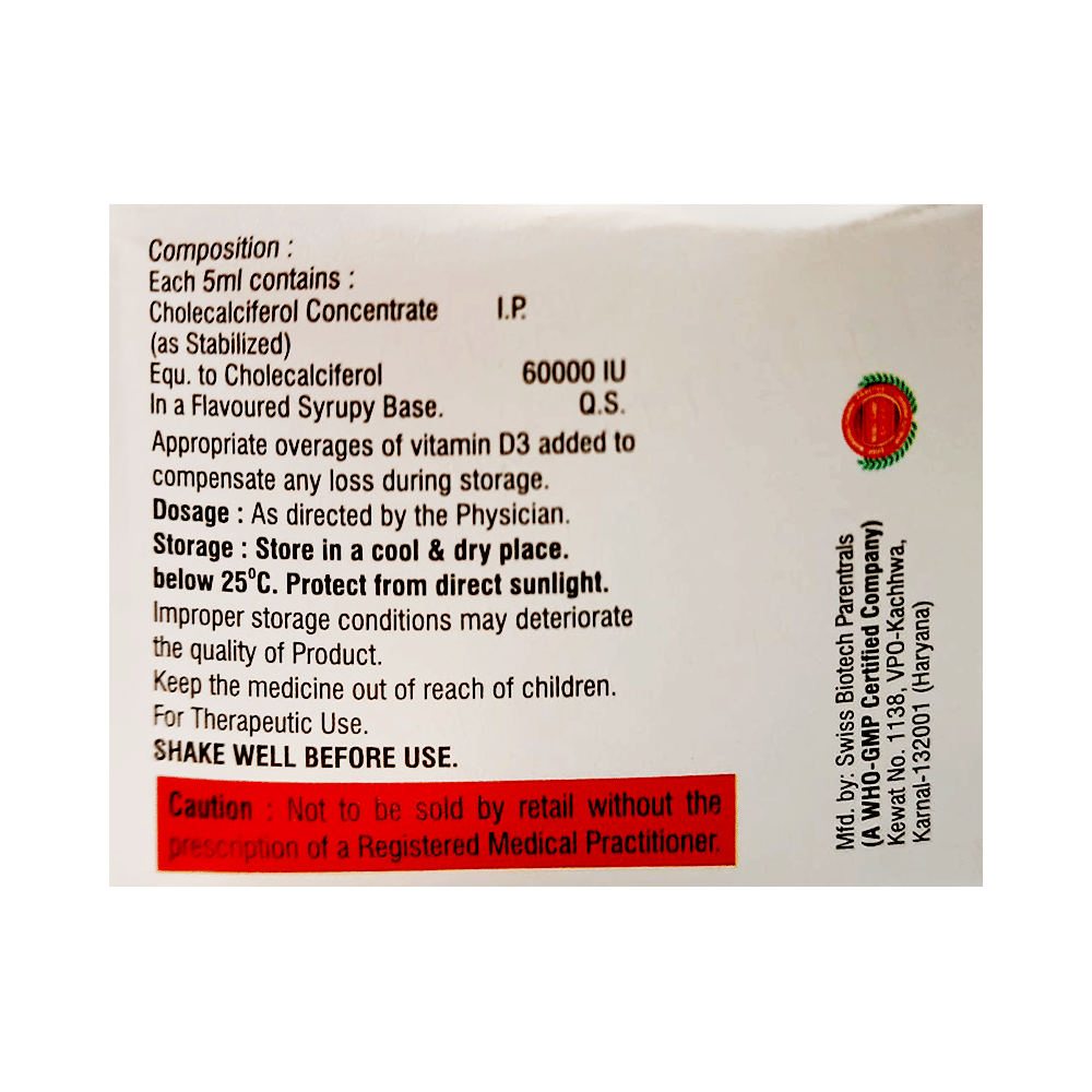 Salt Composition: Vitamin D3 (60000IU)