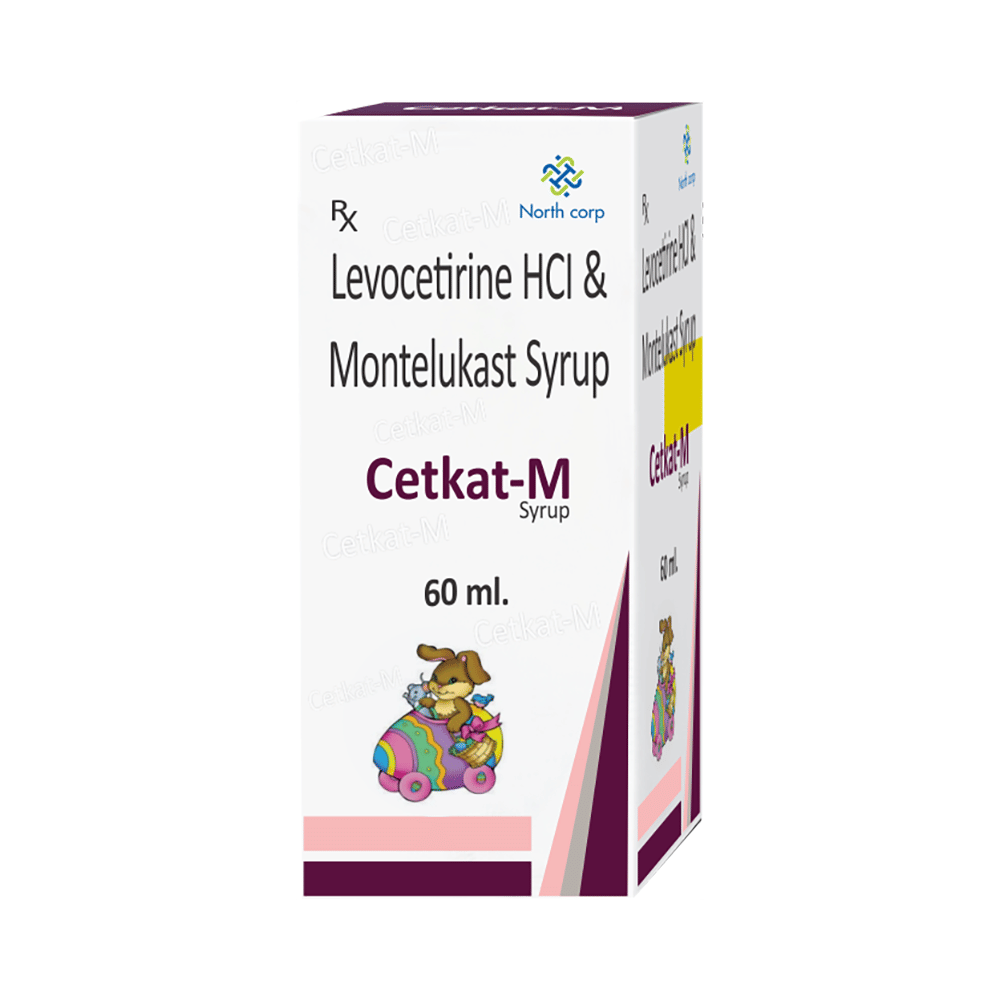 Cetkat-M Syrup is commonly prescribed in children to treat symptoms of allergy such as runny nose, sneezing, itching, swelling, congestion, and watery eyes. It may also help in the treatment of asthma and skin allergies. Give this medicine to your child at a fixed time before or after food in the prescribed dose, time, and way. For asthma, prefer giving Cetkat-M Syrup in the evening or 2 hours before physical activity. For allergy, it is best to give it either in the morning or in the evening, depending upon the time of onset of symptoms. In case your child has both, prefer giving it in the evening. If your child vomits within 30 minutes of taking this medicine, give the same dose again, but skip it if it’s already time for the next dose.Your child may start to feel better after a few regular doses. However, you must still complete the prescribed dose to ensure maximum benefit. Moreover, stopping the medicine abruptly may worsen your child’s condition. This medicine may cause some minor and temporary side effects like vomiting, diarrhea, nausea, dizziness, dry mouth, rash, and headache. Usually, these episodes subside once your child’s body adapts to the medicine. However, in case these effects persist or start bothering your child, consult your child’s doctor without any delay.Let your child’s doctor know if your child is already taking any medicines. Also, narrate your child’s complete medical history, including any prior episodes of allergy, heart problem, blood disorder, vascular disorders, birth defects, airway obstruction, lung anomaly, skin disorder, liver impairment, and kidney malfunction. This information is critical for dose alterations and in planning your child’s overall treatment.
