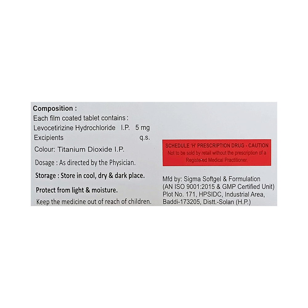 Salt Composition: Levocetirizine (5mg)
