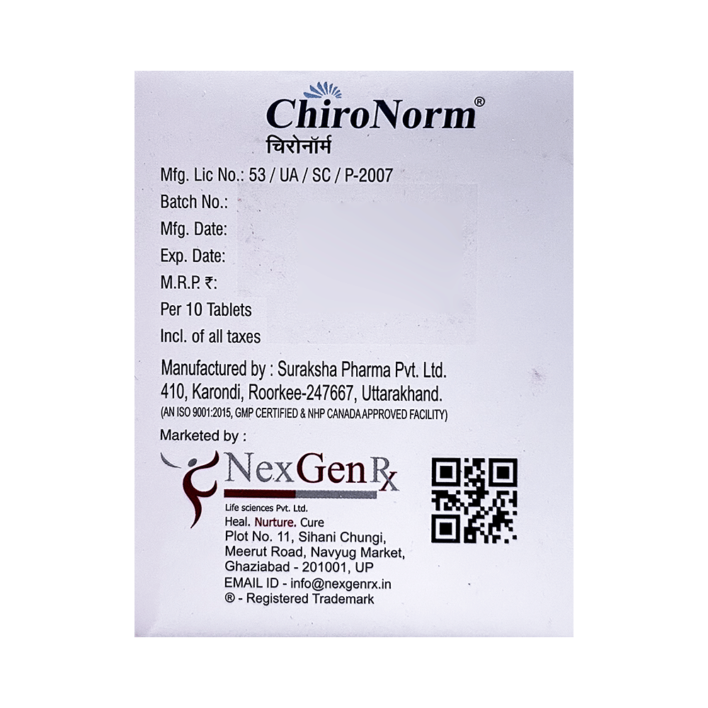 Take this medicine in the dose and duration as advised by your doctor. Swallow it as a whole. Do not chew, crush or break it. CHIronorm Tablet may be taken with or without food, but it is better to take it at a fixed time.