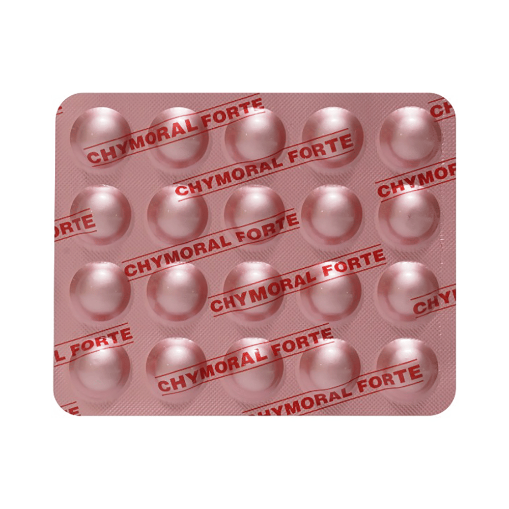 Chymoral Forte Tablet is a medicine used in the treatment of pain and inflammation (swelling). It helps relieve pain and swelling in postoperative wounds and other inflammatory diseases. Chymoral Forte Tablet can be taken with or without food. In general, you should try to use the smallest amount necessary to control your symptoms, for the shortest possible time. You should take this medicine regularly while you need it. Try not to miss doses, as this will make the medicine less effective.This medicine is generally well tolerated and does not usually cause any common side effects. However, in rare cases, it might cause an allergic reaction. Symptoms of an allergic reaction include itching, shortness of breath, swelling of the lips or throat, shock, and loss of consciousness. Occasionally, it may also cause gastric disturbances. If you experience any such symptoms, consult your doctor immediately.To make sure it is safe for you, before taking this medicine, let your doctor know if you have any medical conditions or disorders. You should also tell your doctor all the other medicines you are using or taking. Pregnant and breastfeeding women should consult their doctors before using this medicine.
