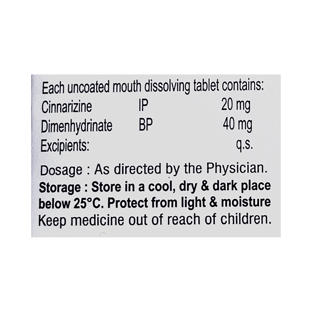 Salt Composition: Cinnarizine (20mg) + Dimenhydrinate (40mg)