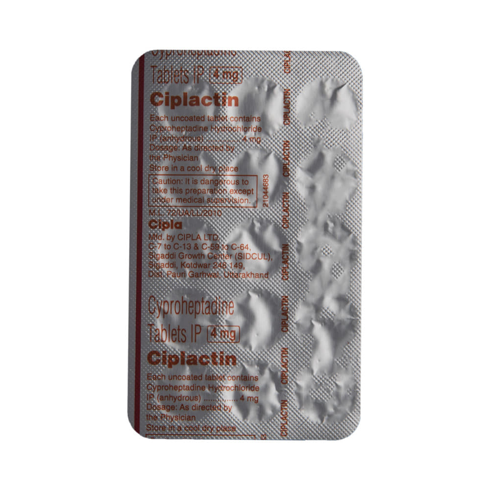 Ciplactin Tablet is an antihistamine medication. It blocks the action of certain chemical messengers that are responsible for inflammation, congestion, itching, and other allergic reactions. Due to constant increased energy intake and stimulation of growth hormone secretion, it stimulates the appetite too.