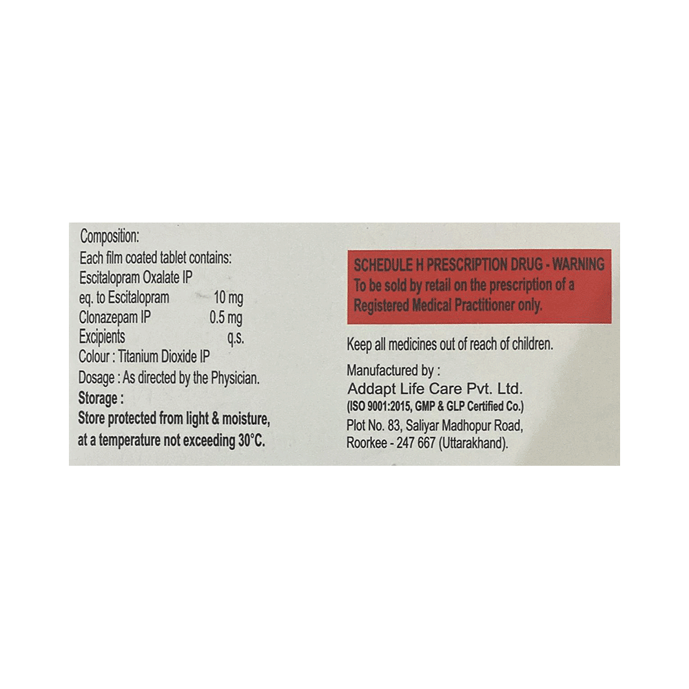 Salt Composition: Clonazepam (0.5mg) + Escitalopram Oxalate (10mg)