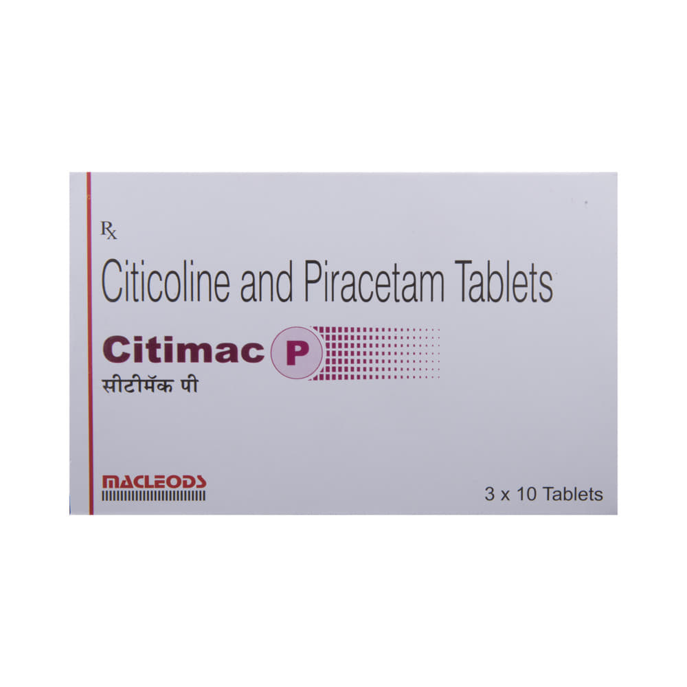 Citimac P Tablet is a medicine used in stroke rehabilitation and as a cognitive enhancer. It protects the nerve cells in the brain from damage and also helps to repair the damaged nerve cells. It may also be used in the treatment of brain trauma. Citimac P Tablet may be taken with or without food, preferably at the same time each day. Take it at the same time each day as this helps to maintain a consistent level of medicine in the body. Take this medicine in the dose and duration as advised by your doctor and if you have missed a dose, take it as soon as you remember it. Do not skip any doses and finish the full course of treatment even if you feel better. It is important that this medication is not stopped suddenly without talking to your doctor as it may worsen your symptoms.Some common side effects of this medicine include hyperactivity, stomach pain, nervousness, and decreased blood pressure. However, these are temporary and usually resolve on their own. Please consult your doctor if these do not subside or bother you. Drink plenty of fluids to keep yourself hydrated while taking this medicine as this medicine may cause diarrhea. This medicine may cause weight gain and to control it, you should have a balanced diet and exercise regularly.