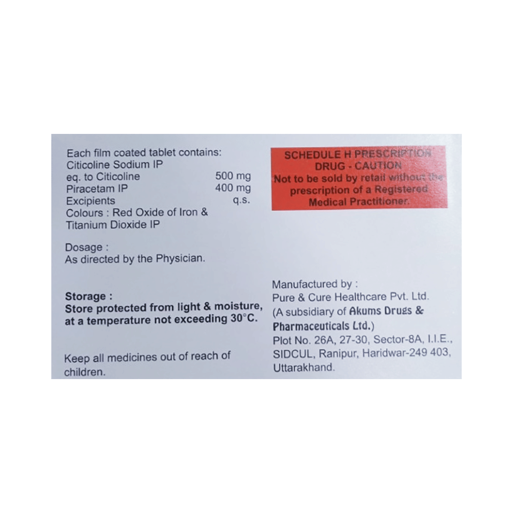 Salt Composition: Citicoline (500mg) + Piracetam (400mg)