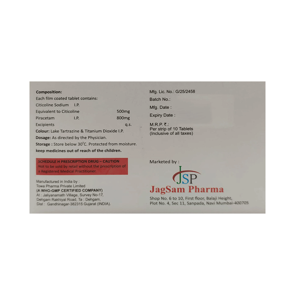 Salt Composition: Citicoline (500mg) + Piracetam (800mg)