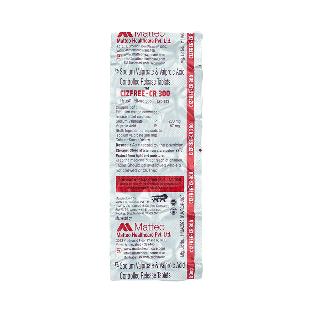 Cizfree-CR 300 Tablet is a combination of two antiepileptic medicines: Sodium Valproate and Valproic Acid.