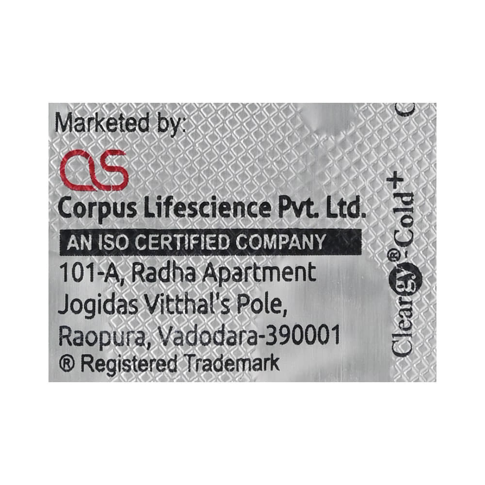Cleargy-Cold+ Tablet is a medicine used in the treatment of common cold symptoms. It provides relief from symptoms such as headache, sore throat, runny nose, muscular pain, and fever. Cleargy-Cold+ Tablet can be taken with or without food. The dose and duration will depend on the severity of your condition. You should keep taking the medicine even if you feel better until the doctor says it is alright to stop using it.Using this medicine may cause a few common side effects such as nausea, vomiting, sleepiness, dizziness, and headache. If any of these side effects do not resolve with time or get worse, you should let your doctor know. Your doctor may be able to suggest ways of preventing or reducing the side effects. In general, you should try to use the smallest amount necessary to control your symptoms.Before using the medicine, you should tell your doctor if you have any other medical conditions or disorders. To make sure it is safe, you should let your doctor know all the other medicines you are taking. Also, tell your doctor if you have any problems with the liver or kidneys. Avoid consumption of alcohol while on treatment with this medicine as it may increase the chance of some side effects. Pregnant and breastfeeding women should consult their doctors first before using the medicine.