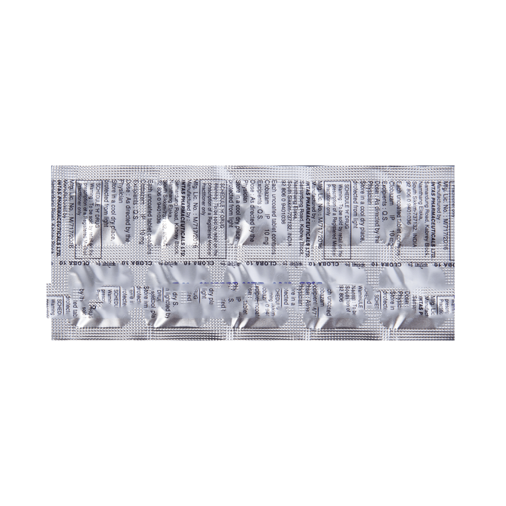 Cloba 10 Tablet belongs to a class of medicines known as benzodiazepines. It is used to treat epilepsy (seizures) and severe anxiety. It works by suppressing the abnormal and excessive activity of the nerve cells in the brain. Cloba 10 Tablet may be taken with or without food. However, it is advised to take it at the same time each day as this helps to maintain a consistent level of medicine in the body. Take this medicine in the dose and duration as advised by your doctor as it has a high potential of habit-forming.If you have missed a dose, take it as soon as you remember and finish the full course of treatment even if you feel better. It is important that this medication is not stopped suddenly without talking to your doctor as it may increase seizure frequency.Some common side effects of this medicine include tiredness, slurred speech, fever, cough, drooling, constipation, and difficulty in passing urine. It may cause dizziness and sleepiness, so do not drive or do anything that requires mental focus until you know how this medicine affects you. It is important to consult the doctor if you notice blisters on the skin or inside your mouth. If you have been taking this medicine for a long time then regular monitoring of blood and liver functions may be required.