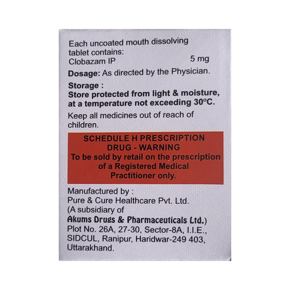 Salt Composition: Clobazam (5mg)