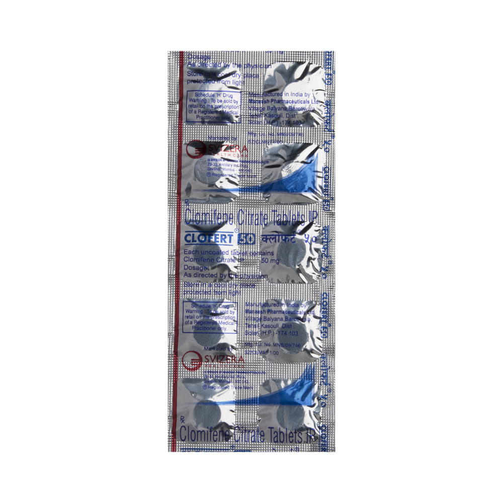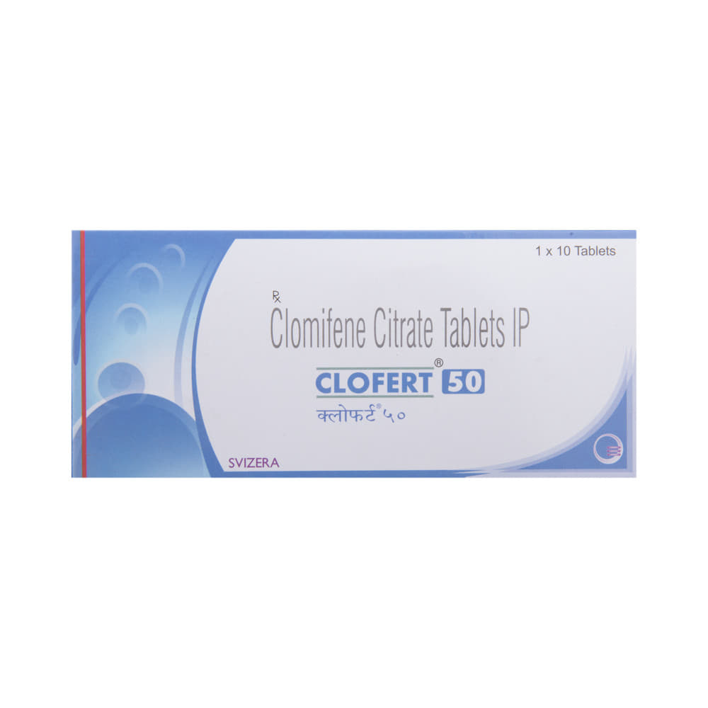 Clofert 50 Tablet is a medicine used to treat female infertility. It is used in women who are unable to become pregnant, due to ovulation problems or suffering from polycystic ovary syndrome (PCOS). Take Clofert 50 Tablet exactly as prescribed by the doctor. It is usually taken for a few days at the beginning of the menstrual cycle. Regular monitoring, including ultrasound scans or hormone level tests, may be needed to track ovulation. Maintaining a healthy lifestyle, including a balanced diet and regular exercise, can further improve the chances of pregnancy while on this medication.The most common side effects associated with this medicine are hot flushes (red and warm face), stomach discomfort, breast pain, and visual disturbances. Most of these symptoms are temporary. However, if they persist, consult your doctor as soon as possible.Inform your doctor before taking Clofert 50 Tablet if you have any issues with the liver, kidney, or heart, and if you are pregnant. Additionally, tell your doctor if you are taking any medicine or supplement before starting Clofert 50 Tablet.