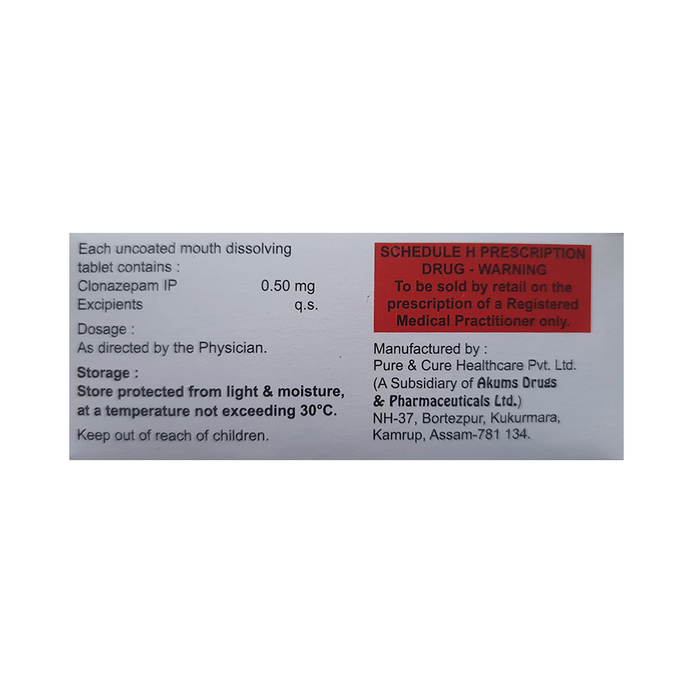 Salt Composition: Clonazepam (0.50mg)
