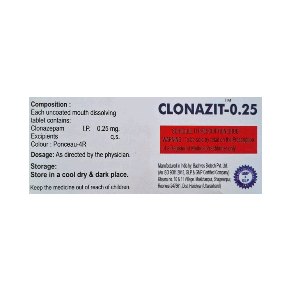 Take this medicine in the dose and duration as advised by your doctor. Do not handle the tablets with wet hands. Put it in your mouth but do not swallow it. Clonazit 0.25 Tablet MD may be taken with or without food, but it is better to take it at a fixed time.
