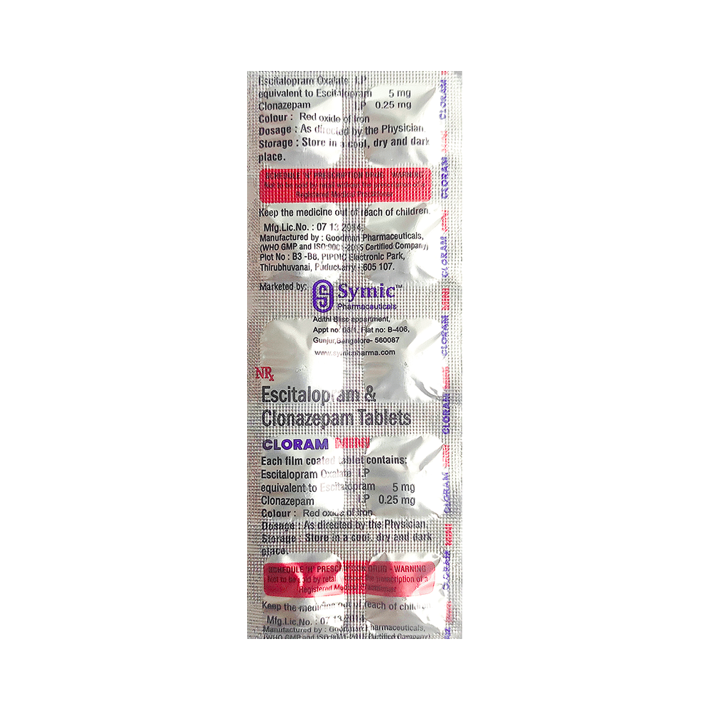 Salt Composition: Clonazepam (0.25mg) + Escitalopram Oxalate (5mg)