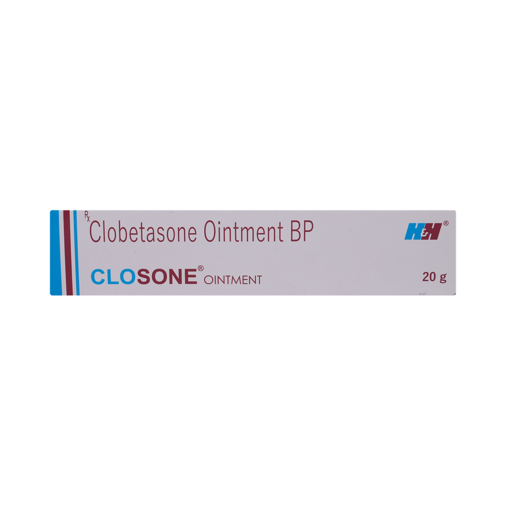 Closone Ointment belongs to a group of medicines called steroids. It is used to treat various skin conditions such as dermatitis, eczema, and allergies. It works by reducing swelling, redness, and itchiness of the skin and prevents further irritation. Closone Ointment is meant for external use and is to be used only as advised by your doctor. Wash and dry the affected area before applying a thin layer of the medicine. Avoid any contact with your eyes, nose, or mouth. Rinse it off with plenty of water if you accidentally get it in these areas. Avoid covering the treated area with airtight dressings such as bandages unless directed by a doctor.Using the medicine may cause skin thinning, burning sensation, irritation, redness, and swelling at the site of application. These are temporary and usually resolve with time. However, if they persist or worsen, let your doctor know. Closone Ointment is not recommended to be used in children. Pregnant and breastfeeding mothers should consult their doctors before using this medicine.