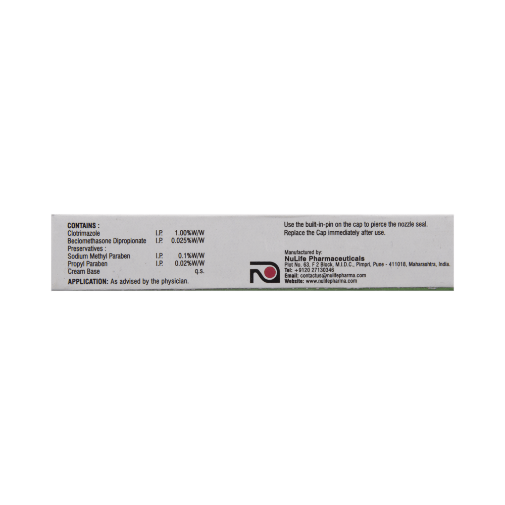 In Treatment of Fungal skin infectionsClotrin-B Cream is a combination of two medicines, Clotrimazole and Beclometasone, used to treat skin infections caused by fungi. These include infections like athlete’s foot, ringworm, vaginal thrush, and sweat rash. Clotrimazole works by killing and stopping the growth of fungi, thereby clearing the infection and relieving the symptoms. Beclometasone blocks the release of chemicals that cause symptoms such as itching, redness, and swelling. Therefore this medicine relieves the inflammation due to these infections.You should use this medicine for as long as it is prescribed, even if your symptoms disappear, otherwise they may come back. Depending on the type of infection you are treating, this may be several weeks. Even after your skin is completely cured, you may have to apply it occasionally to prevent the symptoms from returning.