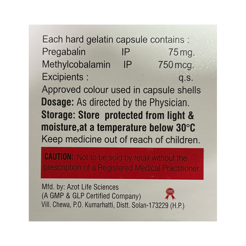 Salt Composition: Methylcobalamin (750mcg) + Pregabalin (75mg)