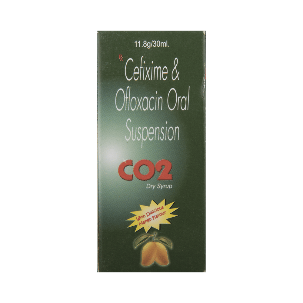 CO2 Dry Syrup Mango contains two antibiotics. Cefixime works by preventing the formation of the bacterial protective covering (cell wall) while ofloxacin directly interacts with the genetic material of bacteria. As a consequence, the infection-causing bacteria stop growing further and the spread of the infection is successfully arrested.