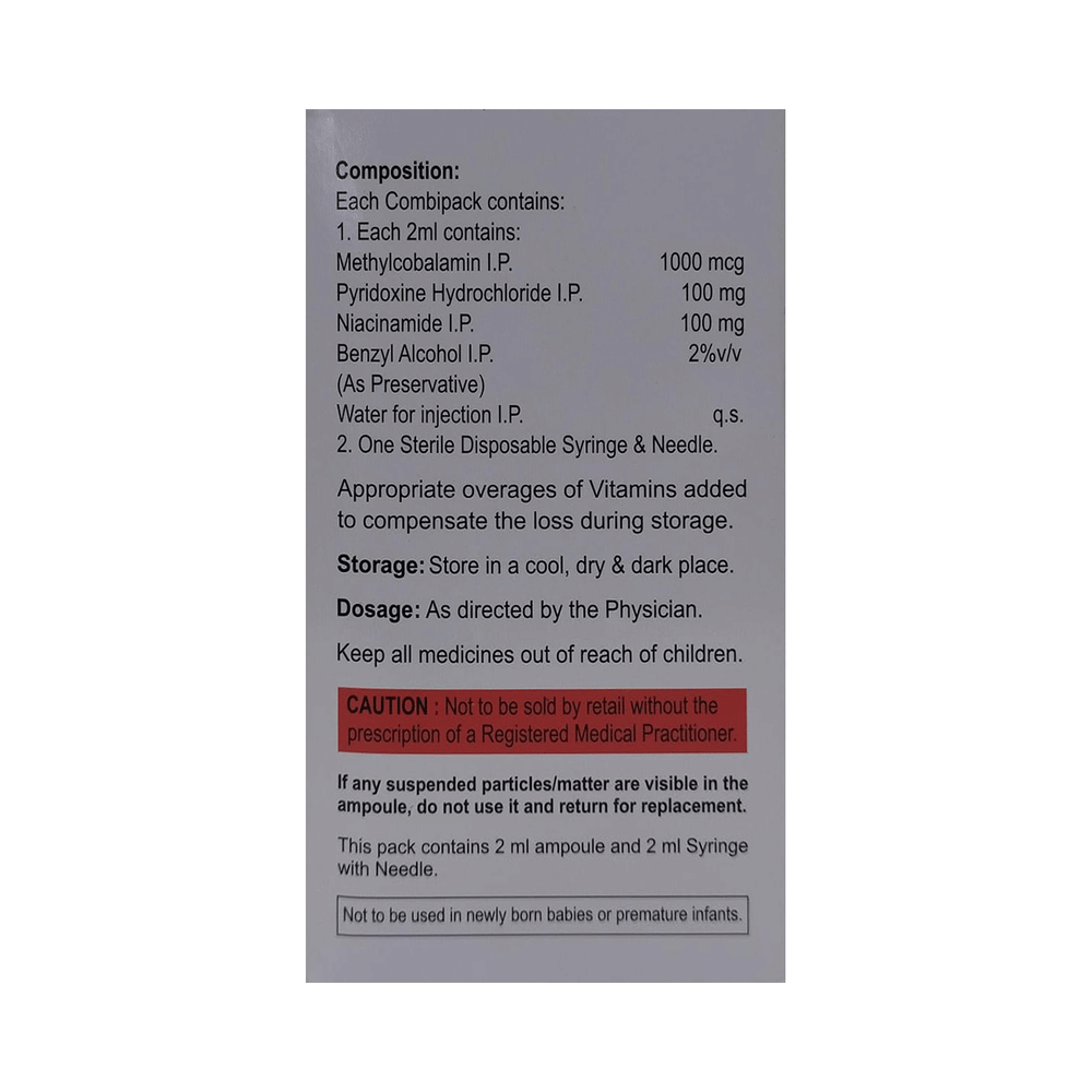 Salt Composition: Methylcobalamin (1000mcg) + Niacinamide (100mg) + Vitamin B6 (Pyridoxine) (100mg)