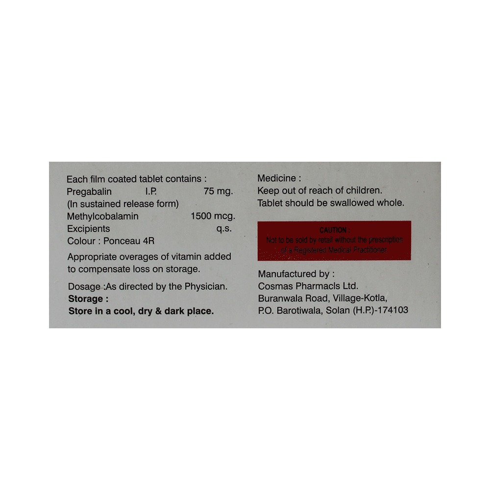 Salt Composition: Methylcobalamin (1500mcg) + Pregabalin (75mg)