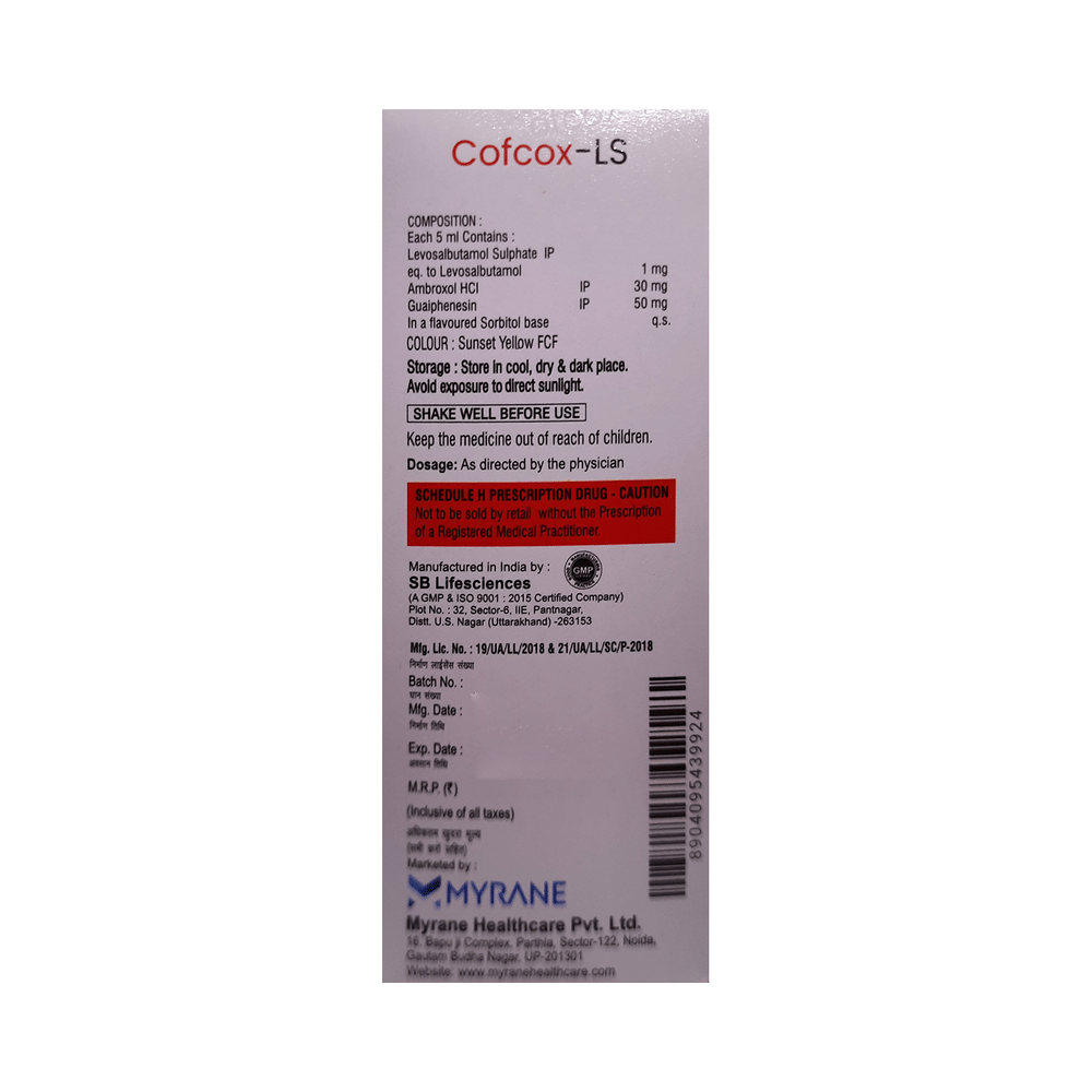 Cofcox-LS Syrup Strawberry Sugar Free is a combination medicine used in the treatment of cough with mucus. It thins mucus in the nose, windpipe, and lungs, making it easier to cough out. It also provides relief from runny nose, sneezing, itching, and watery eyes. Cofcox-LS Syrup Strawberry Sugar Free is taken with or without food in a dose and duration as advised by the doctor. The dose you are given will depend on your condition and how you respond to the medicine. You should keep taking this medicine for as long as your doctor recommends. If you stop treatment too early your symptoms may come back and your condition may worsen. Let your healthcare team know about all other medications you are taking as some may affect, or be affected by this medicine.The most common side effects are nausea, diarrhea, stomach pain, vomiting, muscle cramp, headache, skin rash, and increased heart rate. Most of these are temporary and usually resolve with time. Contact your doctor straight away if you are at all concerned about any of these side effects. This medicine can also cause sleepiness, so do not drive or do anything that requires mental focus until you know how this medicine affects you. Avoid drinking alcohol while taking this medicine as it can make sleepiness worse.Never support self-medication or recommend your medicine to another person. It is beneficial to have plenty of fluids while taking this medication. Before taking this medicine, you should tell your doctor if you are pregnant, planning pregnancy, or breastfeeding. You should also tell your doctor if you have any kidney or liver diseases so that your doctor can prescribe a suitable dose for you.