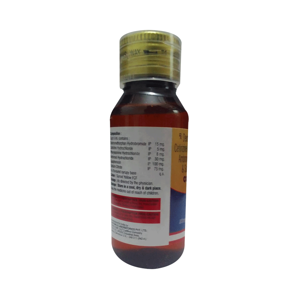 Salt Composition: Dextromethorphan Hydrobromide (15mg/5ml) + Cetirizine (5mg/5ml) + Phenylephrine (8mg/5ml) + Ambroxol (30mg/5ml) + Guaifenesin (100mg/5ml) + Sodium Citrate (75mg/5ml)