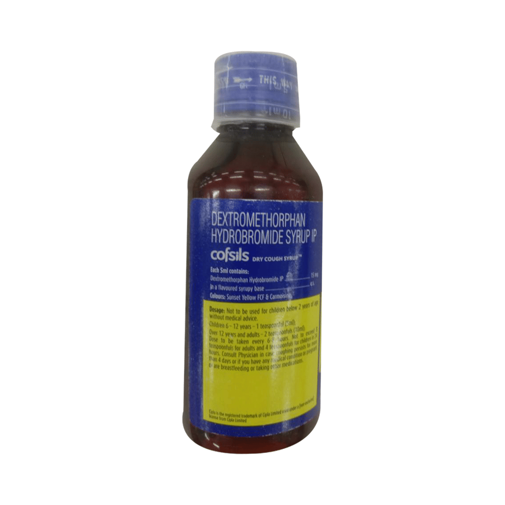 Cofsils Dry Cough Syrup is an antitussive (cough suppressants). It suppresses cough by reducing the activity of cough centre in the brain.