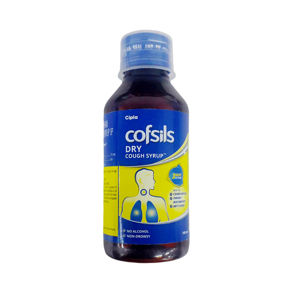In Dry coughA dry cough, also known as non-productive cough, is a cough where no phlegm or mucus is produced. This is irritating, usually associated with a tickly throat and may be caused due to cold, flu, allergies or throat irritants. Cofsils Dry Cough Syrup suppresses dry, hacking coughs. It will help you carry out your daily activities more easily.This medicine is safe and effective. Cofsils Dry Cough Syrup usually starts to work within a few minutes and the effects can last up to several hours. Take it as prescribed by the doctor. Do not stop using it unless you are advised to by your doctor.