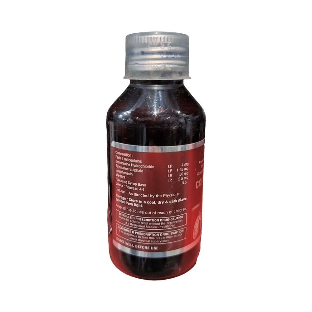 Salt Composition: Bromhexine (4mg/5ml) + Guaifenesin (50mg/5ml) + Menthol (2.5mg/5ml) + Terbutaline (1.25mg/5ml)