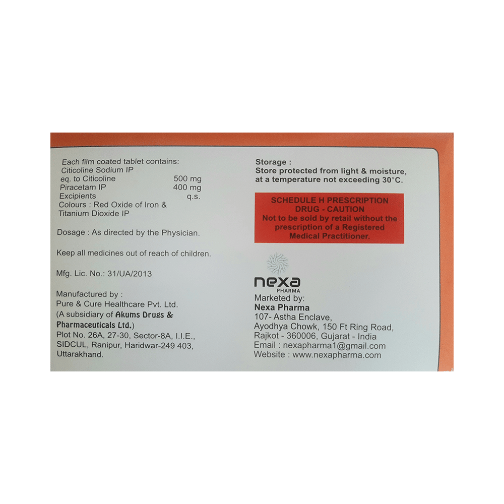 Salt Composition: Citicoline (500mg) + Piracetam (400mg)