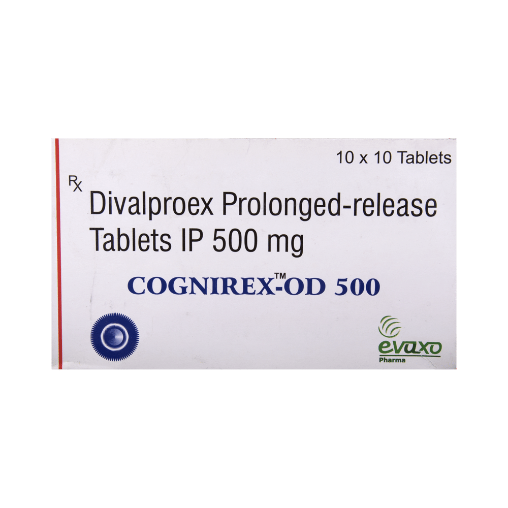 Cognirex-OD 500 Tablet PR is a medication used to treat epilepsy, seizures, bipolar disorder, mania, trigeminal neuralgia, and migraines. It works by stabilizing brain activity. Always use it under medical supervision for safe and effective treatment. Cognirex-OD 500 Tablet PR may be used alone or in combination with other medicines. Your doctor will determine the appropriate dose and frequency to effectively control your symptoms. You can take this medicine with or without food, but for the best results, take it at the same time each day. It usually takes a couple of weeks to work. It is important to take this medicine regularly and for as long as you are advised, even if you feel well. Missing doses may trigger seizures, and if you stop, your condition may get worse. It should never be stopped suddenly.The most common side effects of Cognirex-OD 500 Tablet PR include headache, constipation, nausea, vomiting, dizziness, weight gain, rash, back pain, and abdominal pain. Most of these are not serious. Continue taking the medicine, but consult your doctor if these side effects persist or become bothersome. However, if you notice a skin rash or redness, tell your doctor straight away. Long-term treatment with this medicine can cause osteoporosis (reduced bone mass) and increase your risk of breaking a bone. Also, Cognirex-OD 500 Tablet PR may rarely lead to suicidal thoughts and behaviors. If your mood becomes depressed, tell your doctor.Cognirex-OD 500 Tablet PR may not be suitable for everybody. Before using it, tell your doctor if you have ever had heart problems, kidney or liver disease, difficulty urinating, depression, or suicidal thoughts. Some medicines can interfere with it and should not be taken together, so tell your doctor about all the medicines you are taking to make sure it is safe for you. If you are pregnant, do not take this medicine without asking your doctor. Avoid drinking alcohol, as it may enhance certain side effects and increase the risk of seizures. You may need frequent blood tests to help your doctor make sure you are taking the right dose both before you start and while you are using it.