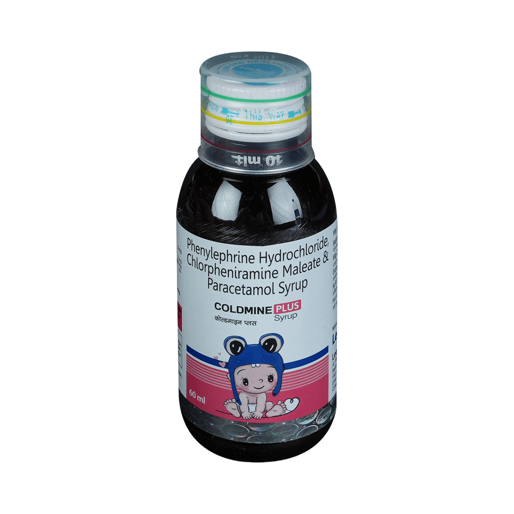 Coldmine Plus Syrup is a medicine used in the treatment of common cold symptoms. It provides relief from symptoms such as headache, sore throat, runny nose, muscular pain, and fever. Coldmine Plus Syrup can be taken with or without food. The dose and duration will depend on the severity of your condition. You should keep taking the medicine even if you feel better until the doctor says it is alright to stop using it.Using this medicine may cause a few common side effects such as nausea, vomiting, sleepiness, dizziness, and headache. If any of these side effects do not resolve with time or get worse, you should let your doctor know. Your doctor may be able to suggest ways of preventing or reducing the side effects. In general, you should try to use the smallest amount necessary to control your symptoms.Before using the medicine, you should tell your doctor if you have any other medical conditions or disorders. To make sure it is safe, you should let your doctor know all the other medicines you are taking. Also, tell your doctor if you have any problems with the liver or kidneys. Avoid consumption of alcohol while on treatment with this medicine as it may increase the chance of some side effects. Pregnant and breastfeeding women should consult their doctors first before using the medicine.