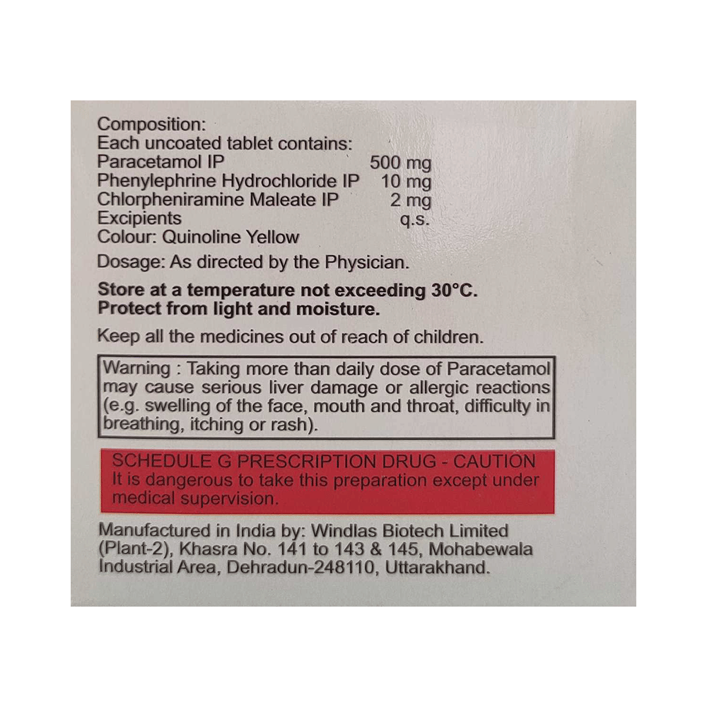 Salt Composition: Chlorpheniramine Maleate (2mg) + Paracetamol (500mg) + Phenylephrine (10mg)